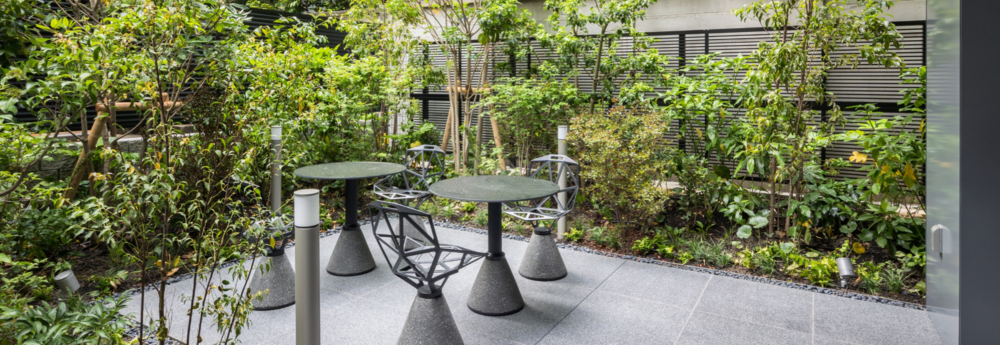 緑も感じられる環境。外堀通りや靖国通りに近く、少し歩けば外濠公園や神田川の水辺環境もあり、リフレッシュにも適しています。