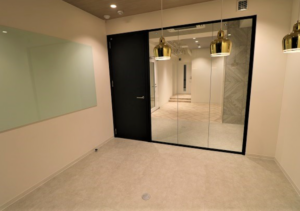 このエリアの人気のセットアップシリーズで、受付、6名会議室、ファミレスブースが設置済み。