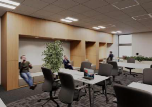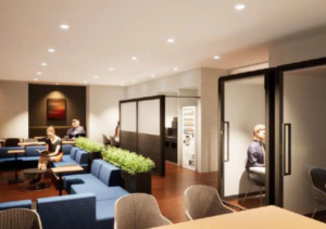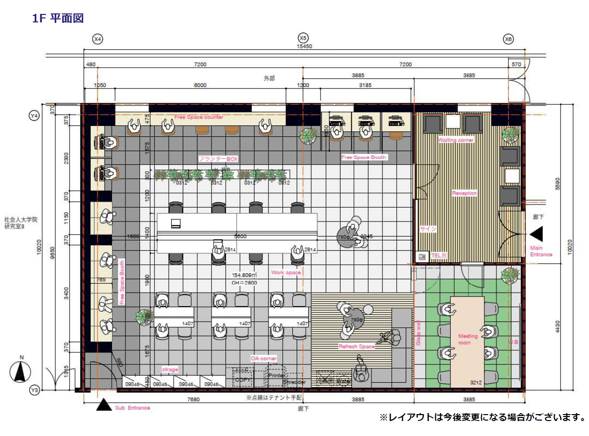 貸会議室あり、必要面積に応じて、可動間仕切りで調整可能。ラウンジあり。個別ウェブブースあり。