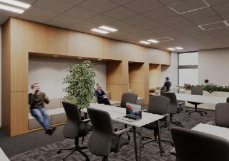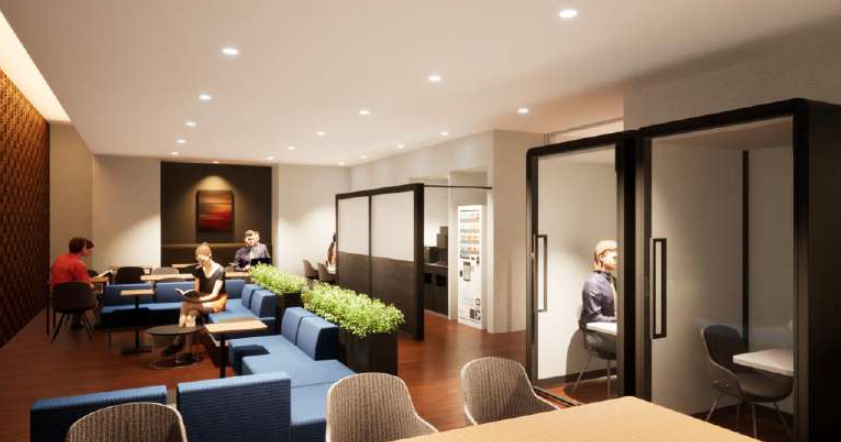 貸会議室あり、必要面積に応じて、可動間仕切りで調整可能。ラウンジあり。個別ウェブブースあり。