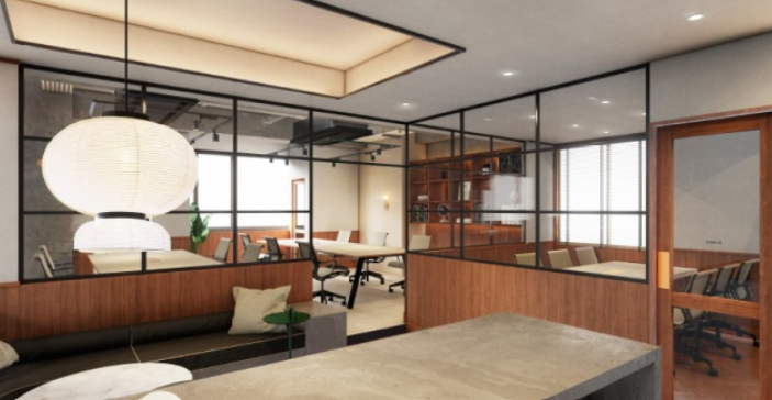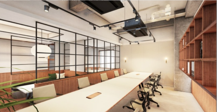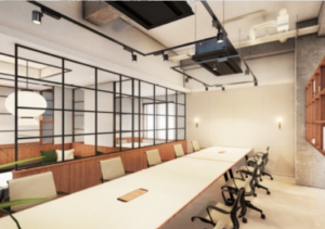 このエリアのフルセットアップオフィス、内装造作付きフルセットアップ工事完了、契約開始より12ヶ月間解約不可
