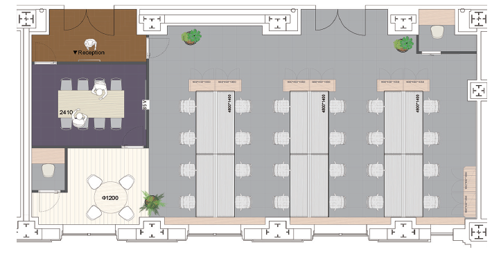 このビル内のフルセットアップオフィス、敷金0相談、受付、ラウンジ、8名会議室、24席、個室ブース×2あり。