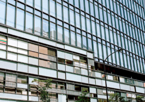 2013年竣工、鉄骨造・地下2階 地上15階のランドマークビル。低層階は商業施設、中層階がオフィス、14~15階が学生向け住宅という構成で、