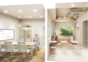原状回復義務なし(原状変更した場合や破損等を除く)、会議室2つ、ラウンジスペースを設置予定。