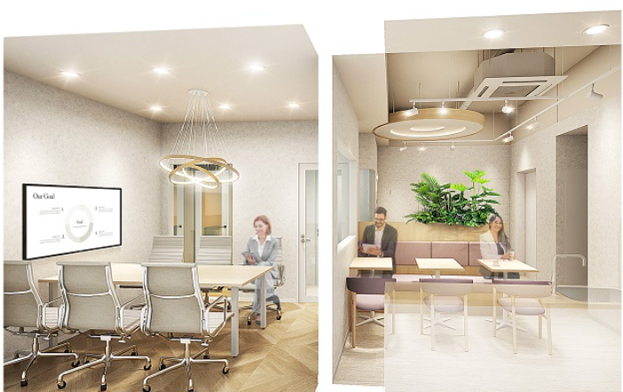 原状回復義務なし(原状変更した場合や破損等を除く)、会議室2つ、ラウンジスペースを設置予定。
