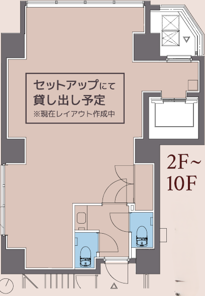 内装・什器備品付き、トイレ男女別、角ビルの特性を活かした採光設計。