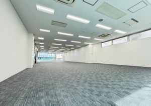 このエリアの居抜きオフィス、カーテンウォールのスタイリッシュな外観で2面採光の明るい室内も魅力。