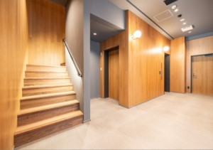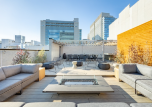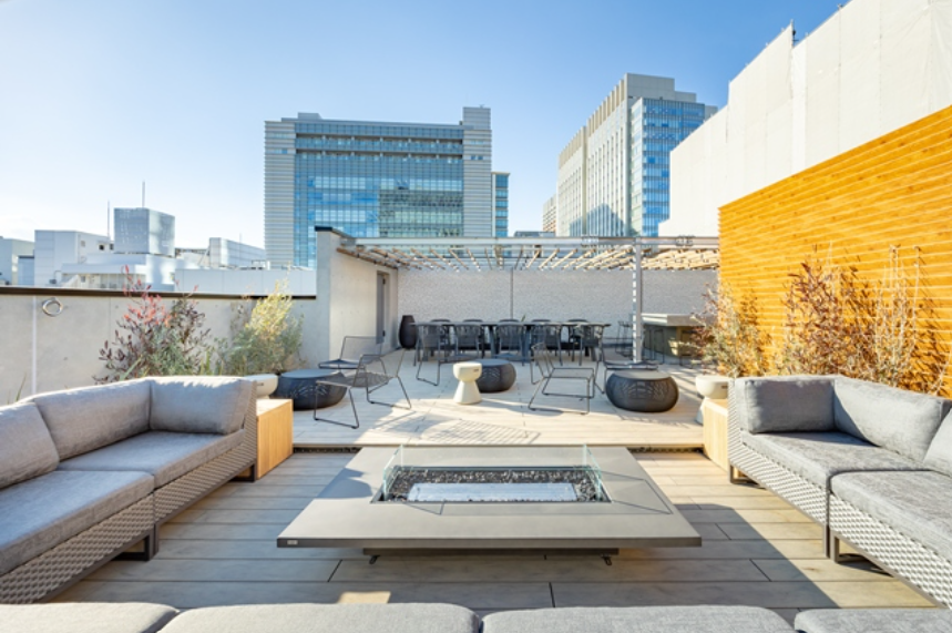1階共用ラウンジあり(貸切利用は要予約)、1階共用会議室2部屋あり(予約制)、8階ルーフテラスあり。