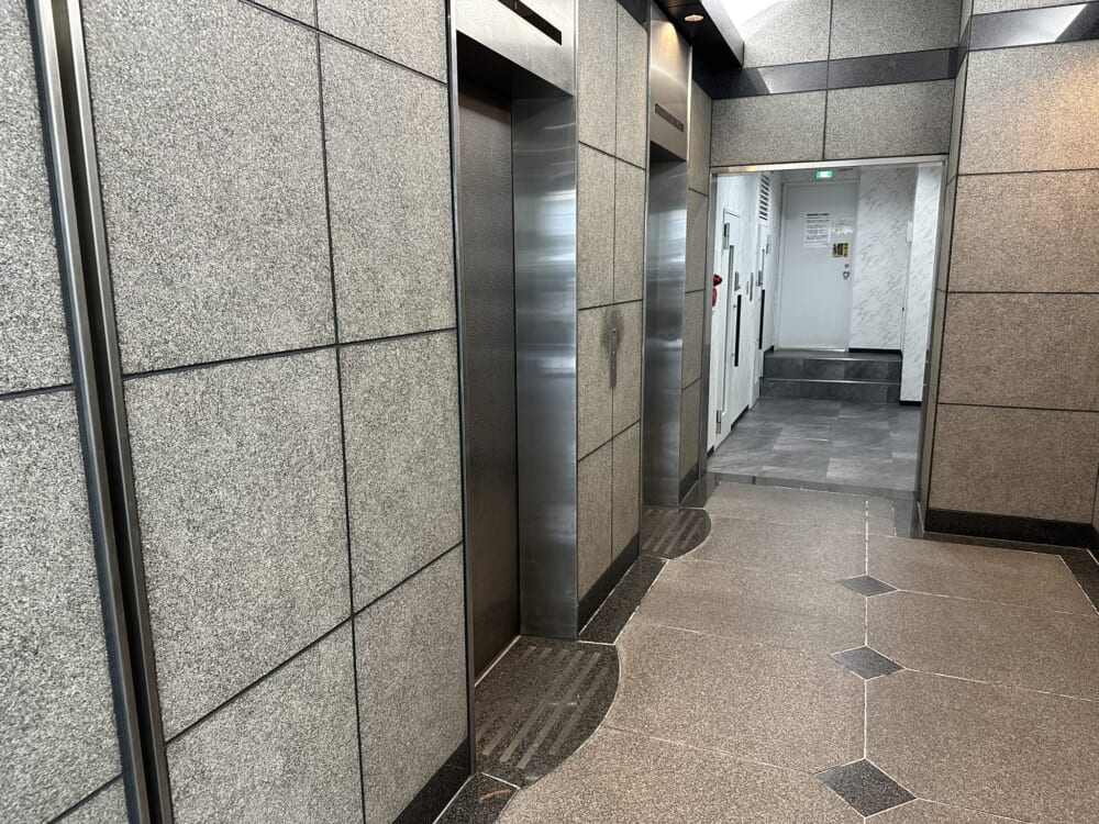 エレベーター2基、個別空調、天井高2,600 mm、機械警備システム。機械式駐車場有。