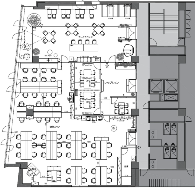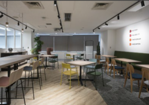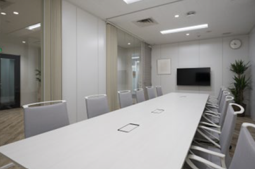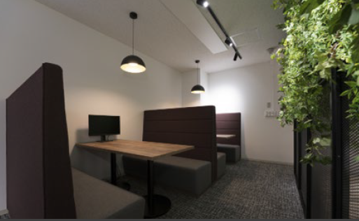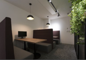 4名、6名、8名の会議室、ファミレスブースあり、50名前後の企業向け、人形町の内装付きオフィスです。