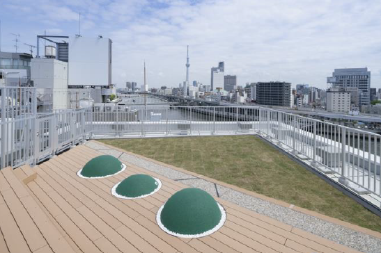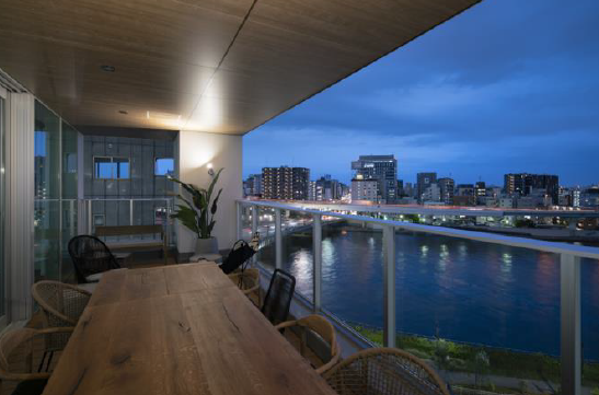 天井高2,700 mm、大型テラス付き、屋上には隅田川を望むパークフロア。