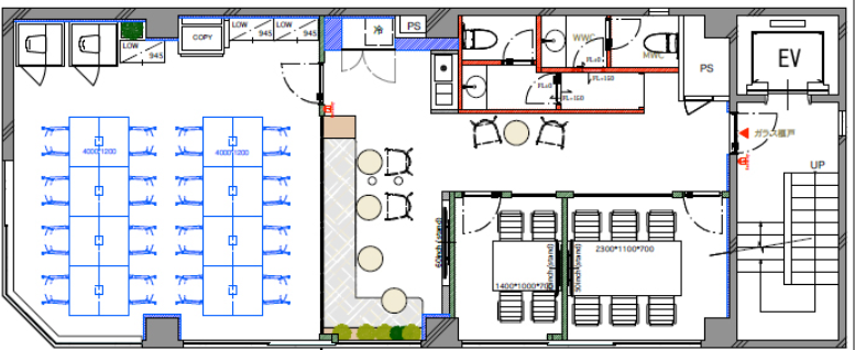 このエリアのセットアップオフィス15名前後の企業向け、八丁堀の内装付きオフィスです。
