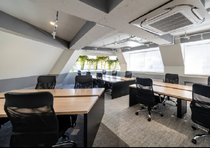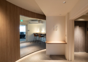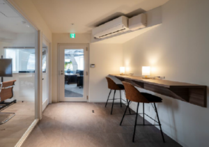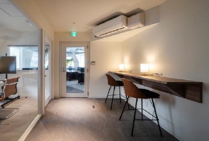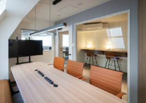 このエリアのフルセットアップオフィス、敷金0相談、受付、5名会議室、座席14席、集中ブース設置済み。