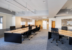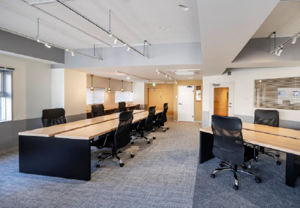 このエリアのフルセットアップオフィス、敷金0相談、受付、5名会議室、座席14席、集中ブース設置済み。