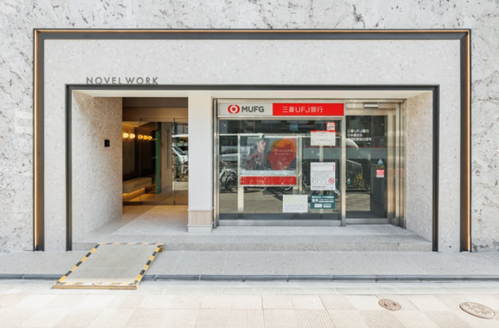 新大橋通りと永代通りが交わる茅場町一丁目交差点で、金融街の中心に近く、金融機関の多いエリア。