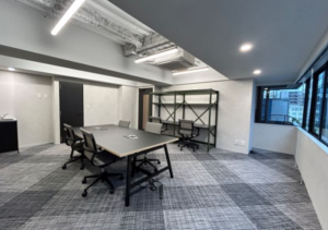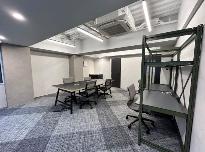 このエリアのセットアップオフィスで什器付き。落ち着いた雰囲気のデザインの内装やレイアウトは様々な企業に対応ができる。