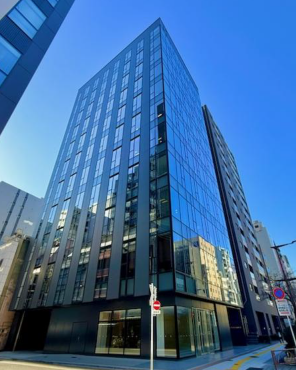 2023年4月竣工、鉄骨造(S造)地上11階建ての江戸通りに面する賃貸オフィス。天井高2,700 mm。