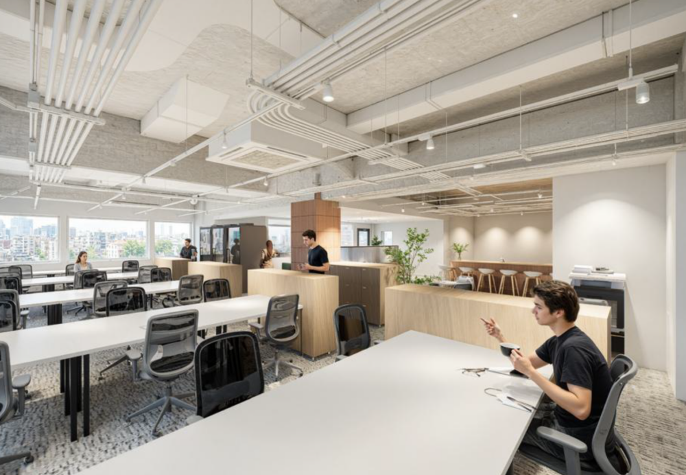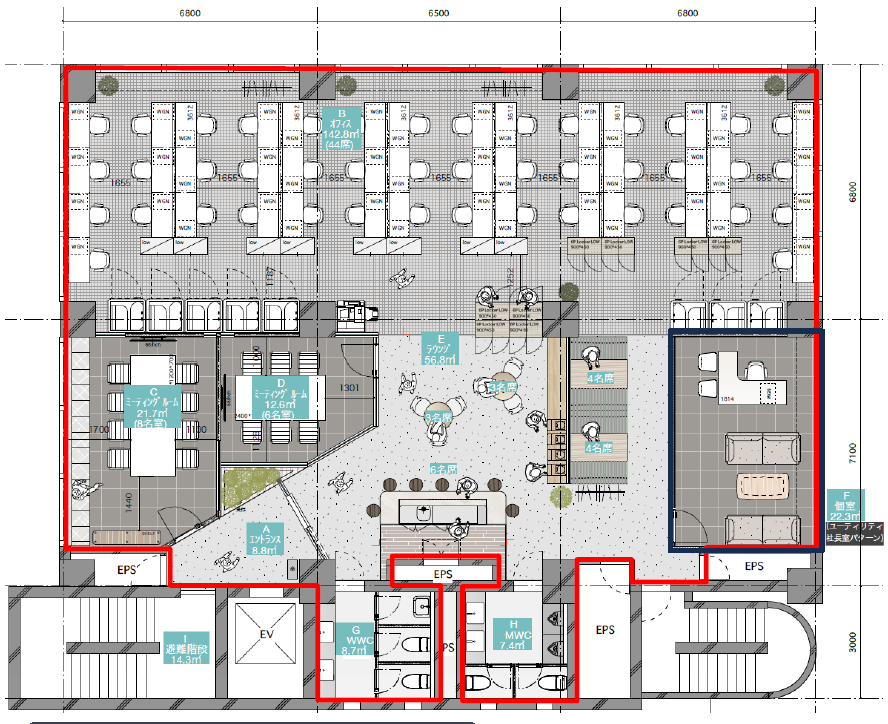 このエリアのフルセットアップオフィス、ビル側で換気設備付の部屋を用意しています。