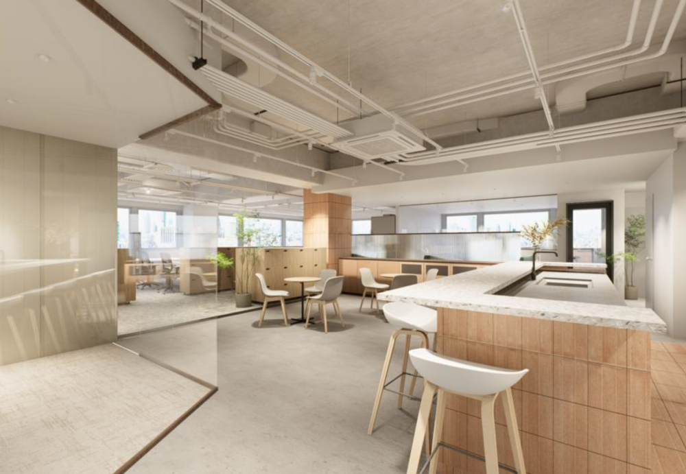 新富町駅1分ほか複数路線が使えるフルセットアップオフィス キッチンフロア