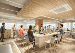 このエリアのフルセットアップオフィス、アイランドキッチンを完備しており、食にまつわる業務から社内外のイベントにも活用可能です。