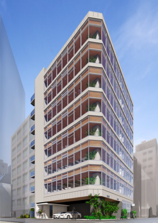2026年3月竣工、鉄骨造地上8階建の賃貸オフィス。