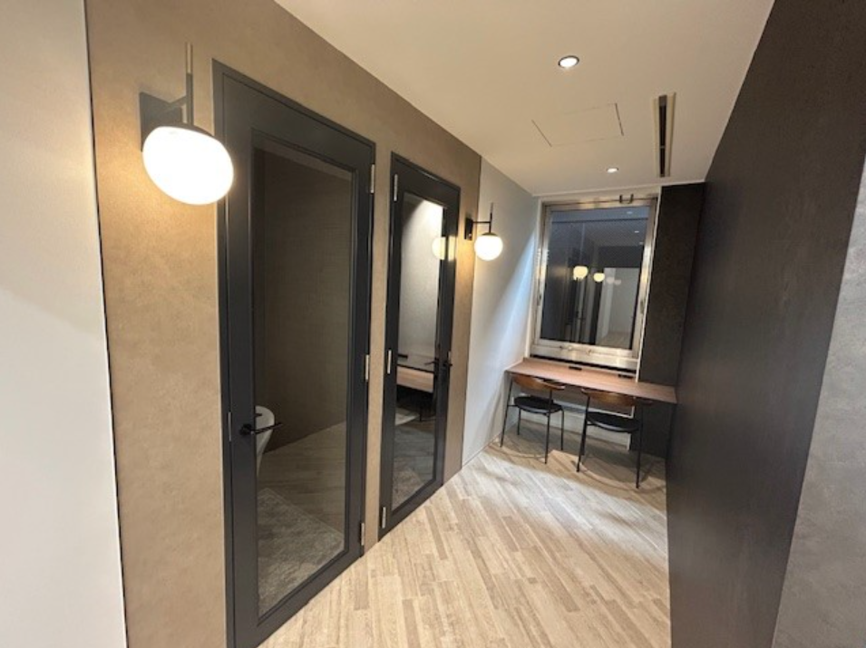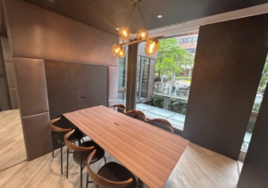 このエリアのセットアップオフィス6名用の個室会議室とテレカンブースが設置済み。