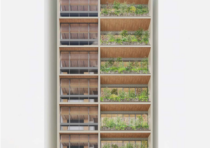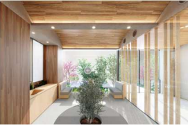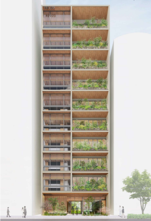 2026年2月竣工、鉄骨造+木造(木質化オフィス)地上10階建ての1フロア1テナントの整形無柱空間の賃貸オフィス。
