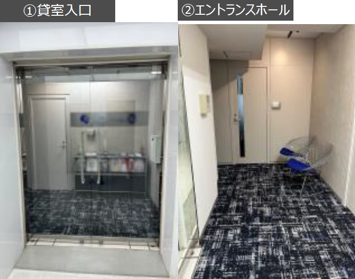 このエリアのセットアップオフィス、6名用の個室会議室とファミレスブース、個室ブースが設置済み。