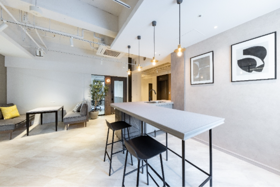 8名用・10名用の個室会議室と大型ラウンジスペースが設置済み。