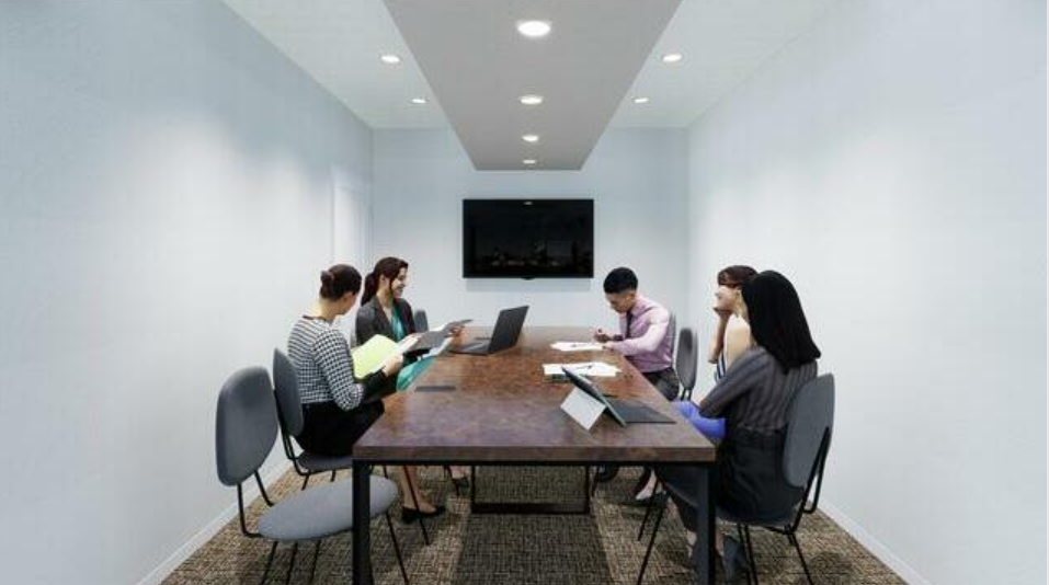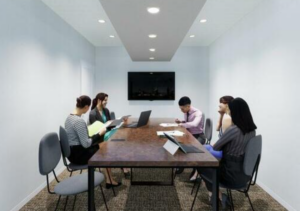 このエリアでは希少なセットアップオフィス、6名用の個室会議室が設置済み。