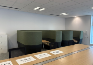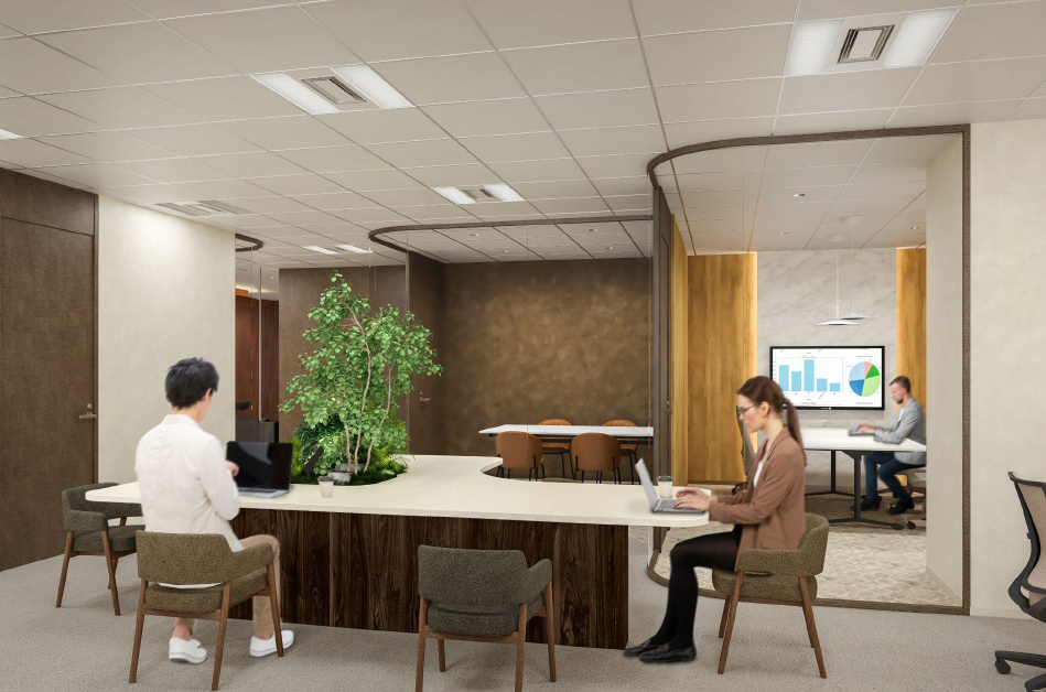 このエリアのフルセットアップオフィス、8名、6名の会議室、什器もついてくる。