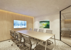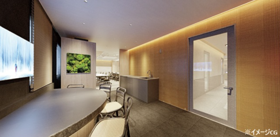 このエリアののフルセットアップオフィス、4名用・6名用の個室会議室と個室ブース、ラウンジが設置済み。