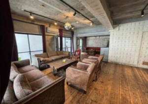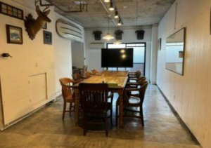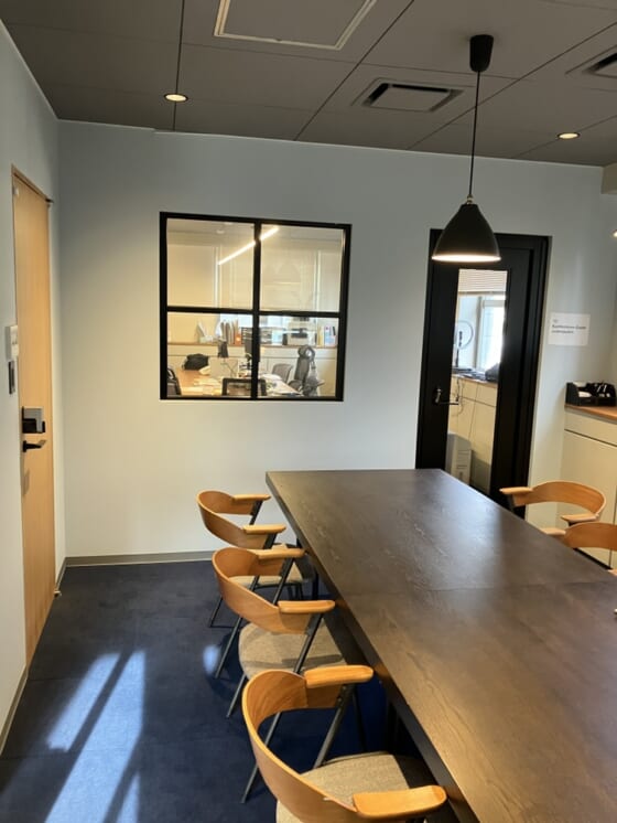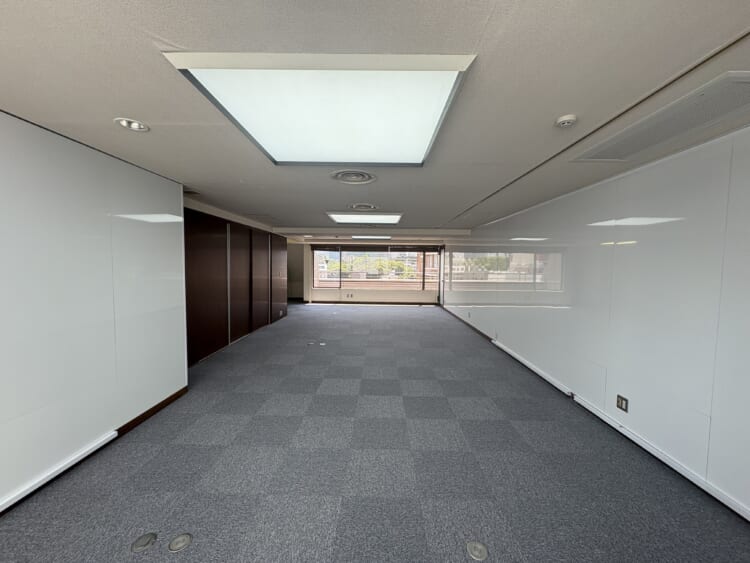 このエリアのフルリノベオフィス。スケルトン天井にライティングレール、フローリング、デザイナーズ仕様の