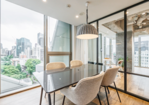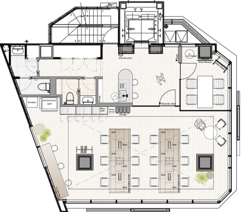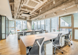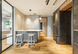 このエリアのフルセットアップオフィス、デザイン性の高い室内は人気デザイナー事務所が設計。
