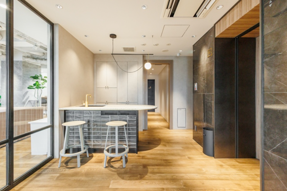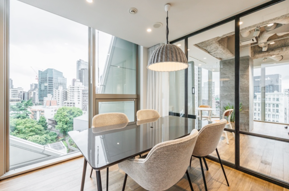 このエリアのフルセットアップオフィス、デザイン性の高い室内は人気デザイナー事務所が設計。