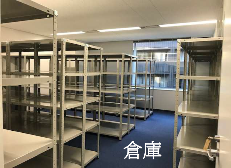 個室会議室が2カ所と倉庫スペースが設置済み。執務室は40-50名前後でのご利用を想定。