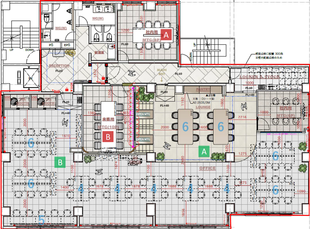 執務室は60名前後でのご利用を想定。田町の内装付きオフィスです。