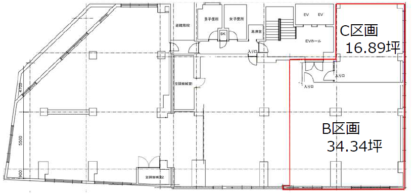 鉄骨鉄筋コンクリート造地上9階・地下1階の賃貸オフィス。