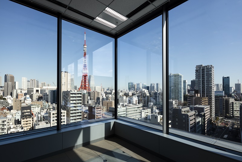 都営三田線芝公園駅徒歩9分、2017年竣工、免震構造、地上10階建ての大型ハイグレードオフィス。