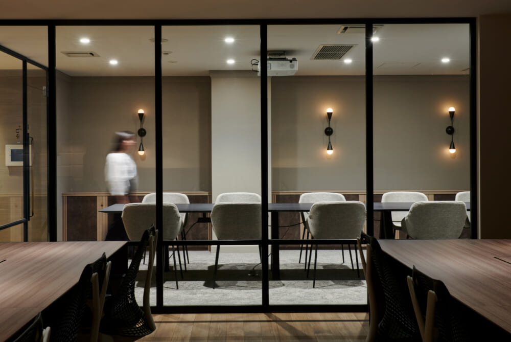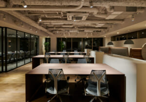 このエリアのフルセットアップオフィス、デザイン性の高い室内は人気デザイナー事務所が設計。