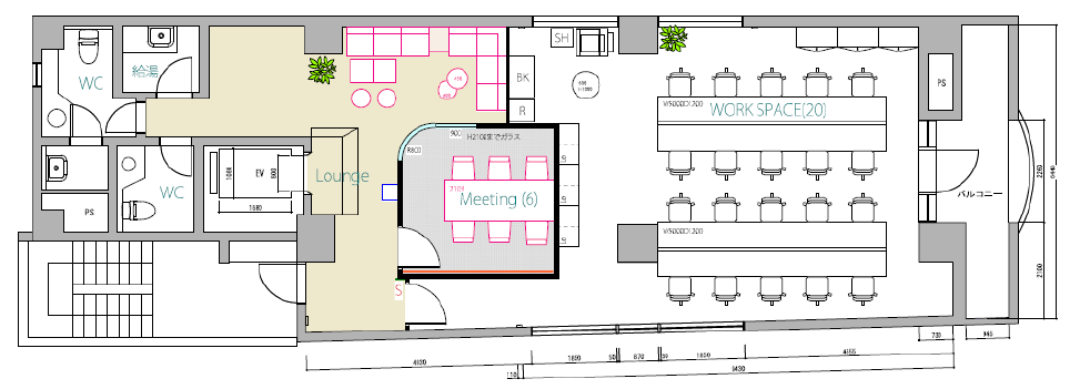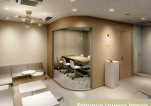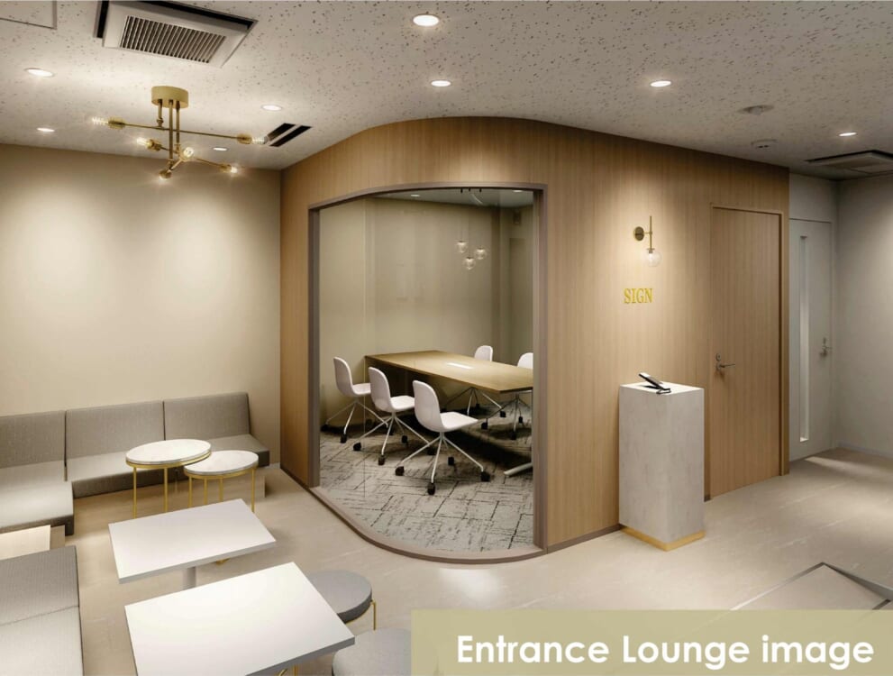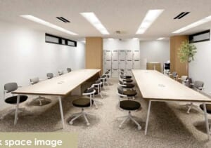 このエリアのセットアップオフィス、6名用の個室会議室とラウンジ、ストックルームが設置済み。