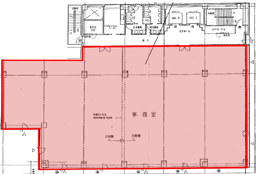 天井高2,700mm、ワンフロア・ワンテナント、エレベーター2基、個別空調、OAフロア、機械警備+有人管理、
