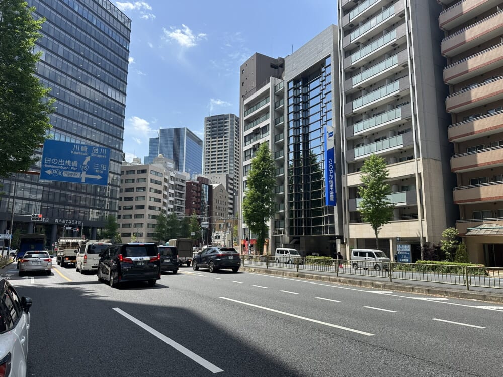 周辺は浜松町・田町の中間に位置する落ち着いたビジネスエリアで、コンビニ・飲食店が点在、
