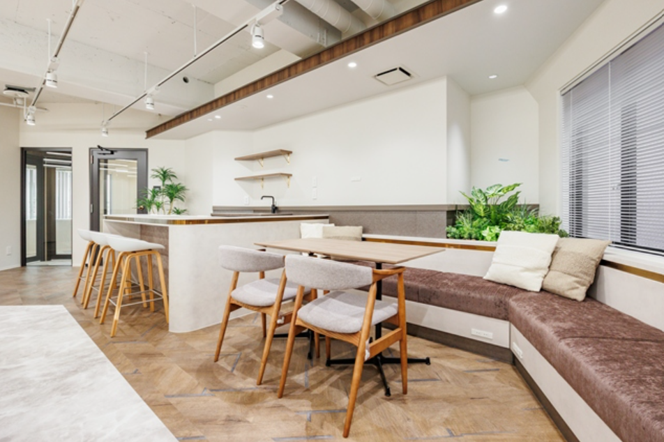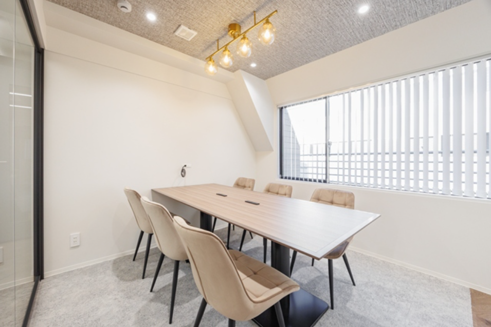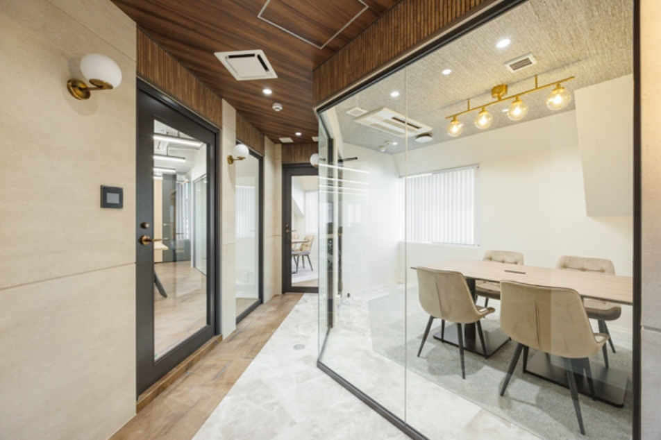 このエリアの敷金なし、原状回復なしのセットアップオフィス6名用の個室会議室×2と個室ブースが設置済み。執務室は22名前後でのご利用を想定。