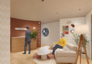 このエリアのセットアップオフィス、個室ブース1室、4名用会議室設置.