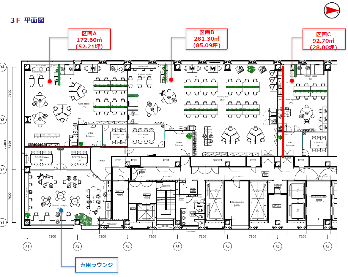 このオフィスの分割区画のセットアップオフィス、ご興味のある方はお問合せください。