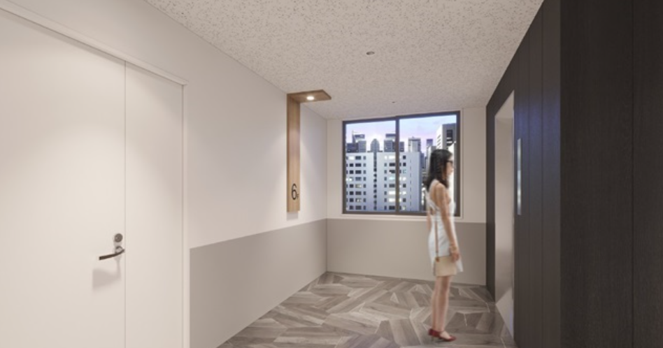このエリアのセットアップオフィス、6名用会議室、テレカンブース1室、執務室什器16席分設置。