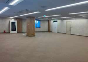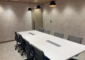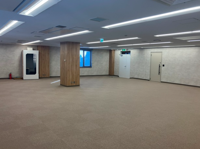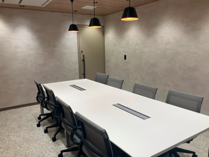 このエリアのセットアップオフィス、8名用×2の個室会議室が設置済み。執務室は50名前後でのご利用を想定。