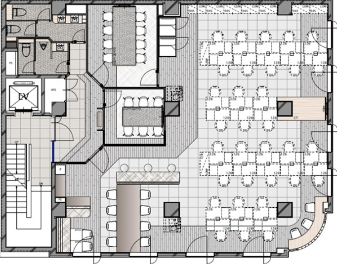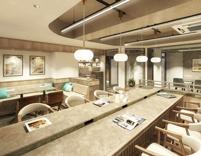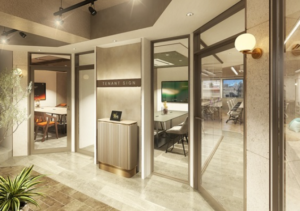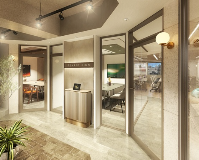このエリアのセットアップオフィス、受付、6名8名会議室40座席を完備。ご興味のある方はお問合せください。