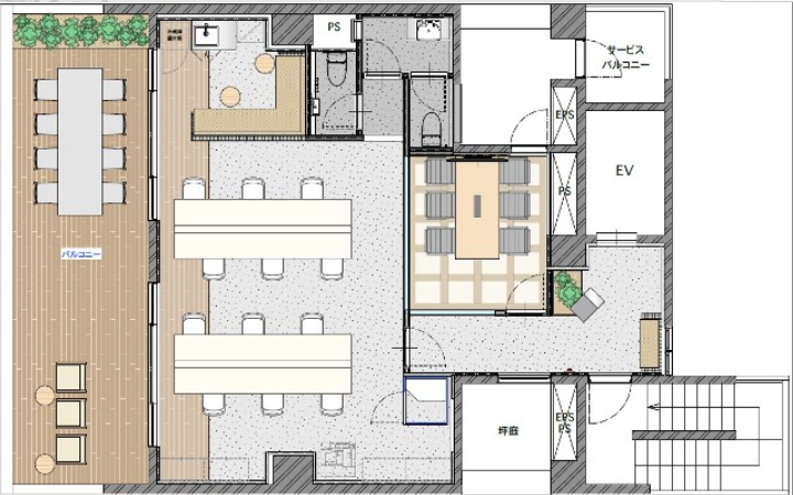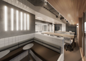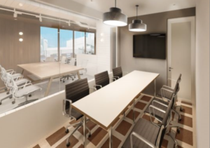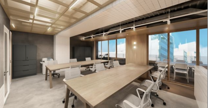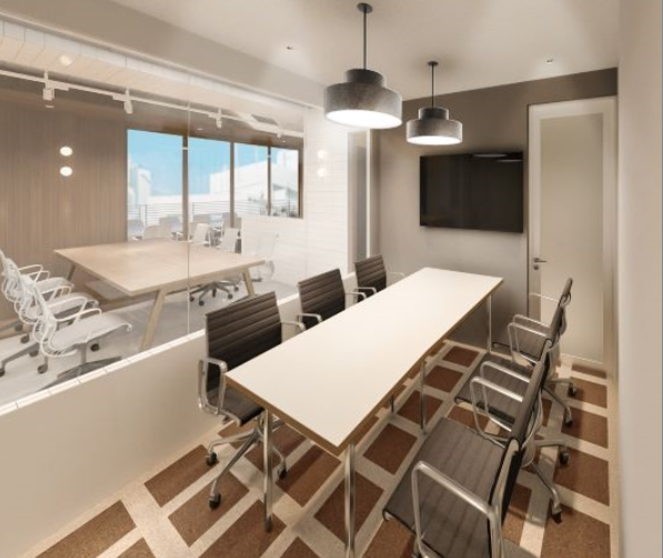内装造作付きセットアップ工事完了予定(執務室12席・6名用会議室・テレカンブース1つ・ラウンジ什器設置予定)